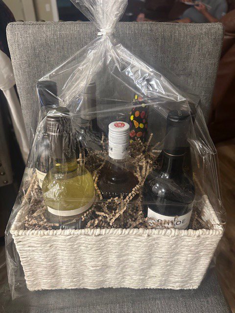 The perfect basket for entertaining this holiday season, Heard it Through the Grapevine Wine Basket-courtesy of our PE team. This basket includes: -19 Crimes 2021 red wine blend -Chloe cabernet sauvignon -Shannon Ridge sauvignon blanc -Shannon Ridge chardonnay -Capriccio red blend sangria -Senorio De Odon crianza 2020