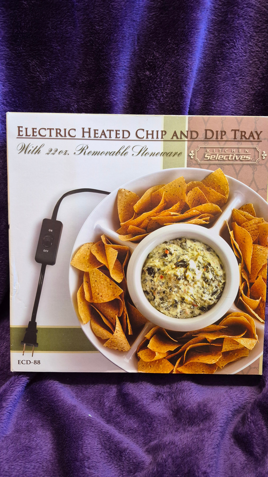 Electric heated chip & dip tray, with 22 oz removable stoneware