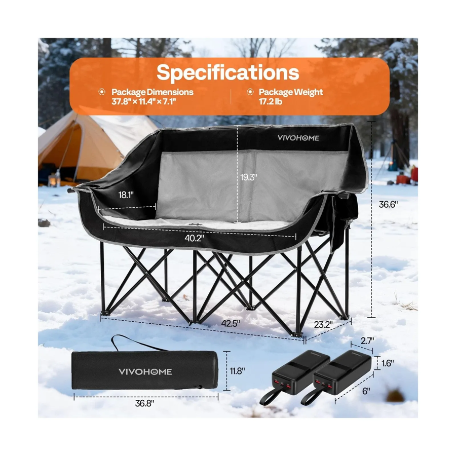 Introducing the ultimate outdoor comfort solution: the heated loveseat camping chair for two! Perfect for cozying up by the campfire or enjoying a chilly evening under the stars, this innovative chair combines warmth and companionship. Designed to provide a comfortable seating experience, it features built-in heating elements to keep you and your partner snug. Whether you’re camping, tailgating, or just enjoying a backyard gathering, this heated loveseat camping chair for two ensures you can relax in style and warmth. Don't let the cold keep you from enjoying the great outdoors—make this heated loveseat your go-to choice for camping adventures!