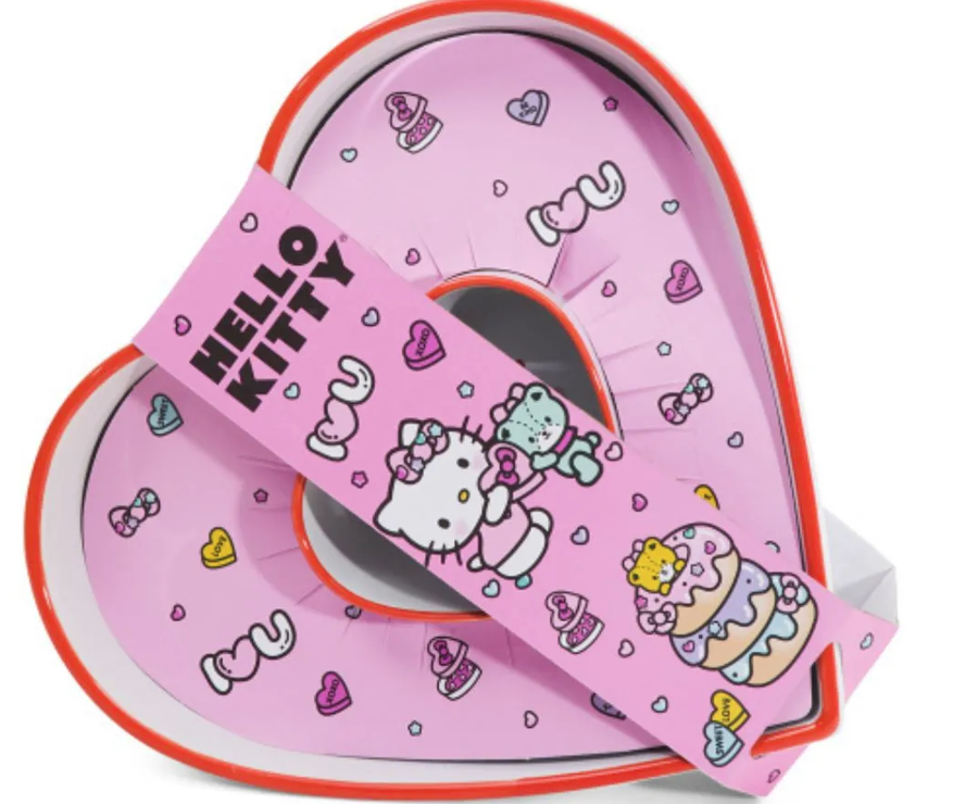 This adorable basket is packed with must-have Hello Kitty treasures that are sure to delight any superfan. Inside you’ll find three (3) melamine platters, two oversized XOXO/Love pillows, a Hello Kitty shower curtain, plus a heart-shaped baker and matching ramekin. Sweet, stylish, and full of charm—this bundle brings the love in every way. All of these items are presented in a large, round modern bulging basket with light stain! (15.5 Inches (H) x 21.75 Inches (W) x 21.75 Inches (D))