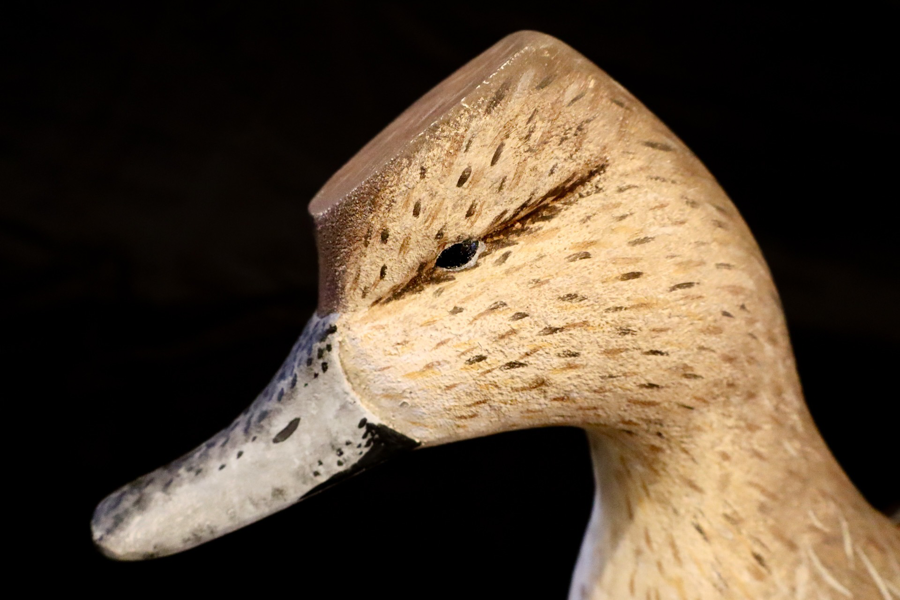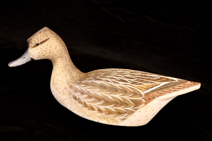 Bring a piece of Eastern Shore waterfowling tradition home with this Hen Pintail decoy, hand-carved and hand-painted by Arthur Leonard of Chincoteague Island, Virginia. With beautifully detailed feathering, a softly blended, natural palette, and a classic pintail profile, this carving has the warmth and character collectors love—equally at home on a shelf, mantel, or in a coastal-themed room. Signed on the underside, this is a distinctive, one-of-a-kind decoy that celebrates the artistry and heritage of the Shore.