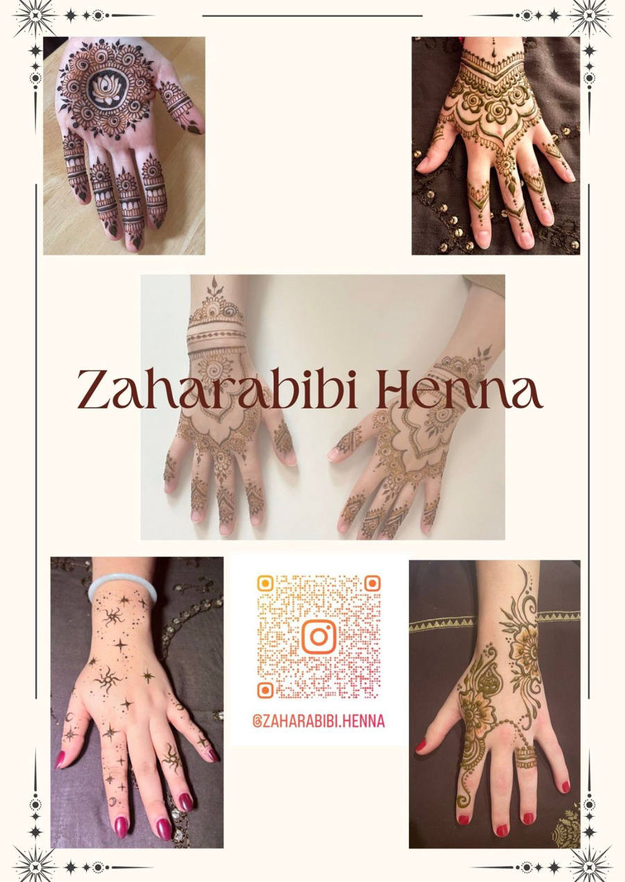 Private henna session with a professional henna artist. Good for one custom, beautiful hand-drawn design on the hand of your choice in a relaxed, one-on-one setting in the comfort of your own home.