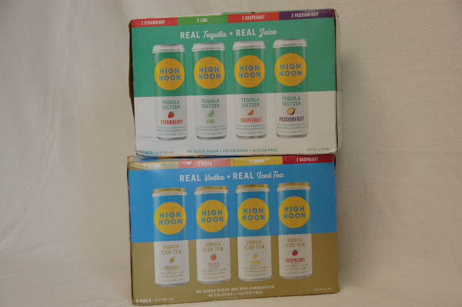 8 pack of High Noon Real Tequila and Real Juice Seltzer--four flavors strawberry, lime, grapefruit and passionfruit. AND 8 pack of High Noon Real Vodka and Real Juice Vodka Iced Tea--four flavors original , peach, lemon and raspberry.