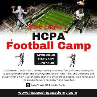 Train with LT's best this summer at a Hill Country Passing Academy camp. Certificate is good for one 2026 spring/summer HCPA camp.