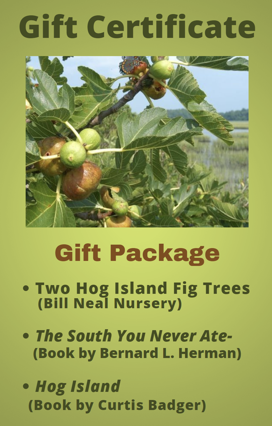 Bring a little Hog Island home with this unique gift package—perfect for gardeners, food lovers, and Eastern Shore history fans! This auction item includes two Hog Island fig trees (available and ready for pickup in July) so you can grow your own sweet figs and enjoy a living connection to a local coastal legacy.