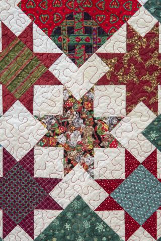 Handmade and donated by Dripping Springs Senior Center quilters. Checkerboard Design with meandering pattern, 42” x 31”.