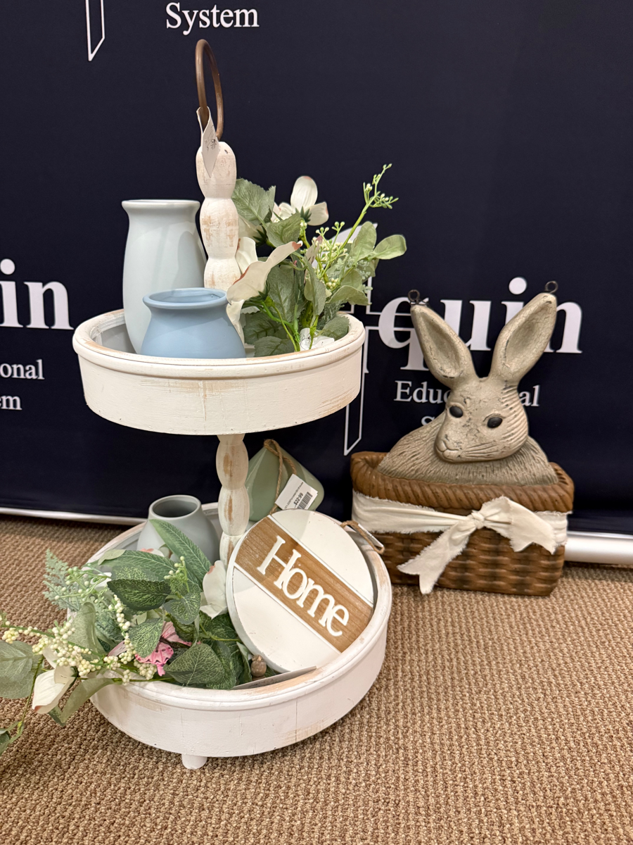 Two Tier Stand, Florals, Pottery, Easter Bunny.