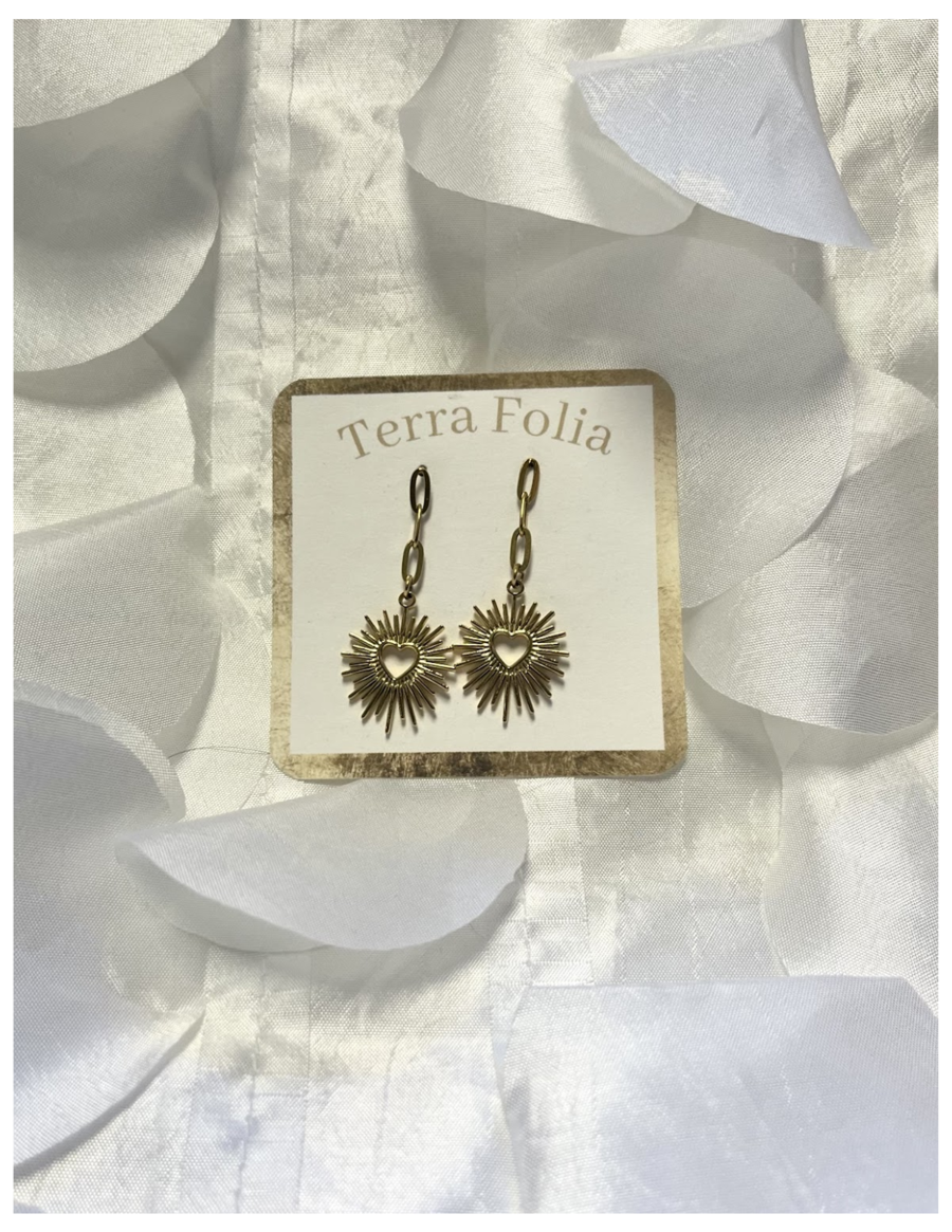A necklace featuring a handmade brass outline of Arkansas paired with sweet heart-shaped earrings. Both pieces are 18k gold-plated. A simple, charming way to show your love for the Natural State. Both of these pieces were generously donated by Terra Folia Art!