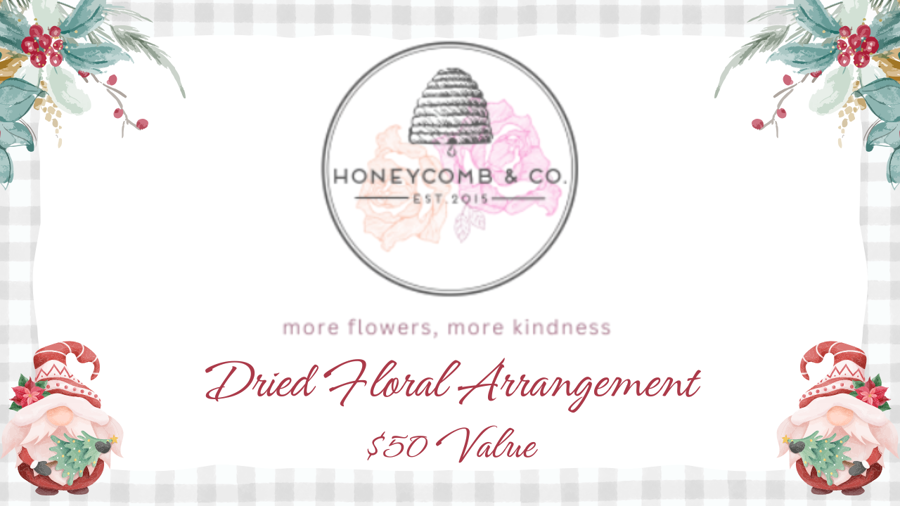 Honeycomb & Co Dried Floral Arrangement Category: PlantsRetail Value: USD $50.00 Bidding Price: USD $20.00 Highest Bidder: 97zd3 1 Bids Bidding has ended on this item. Minimum Bid Increment: USD $5Description Beautiful Dried Floral Arrangement to last through the months for Display