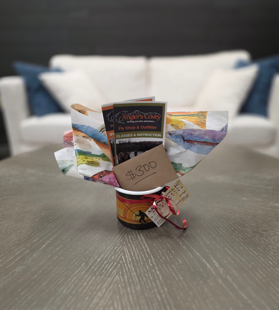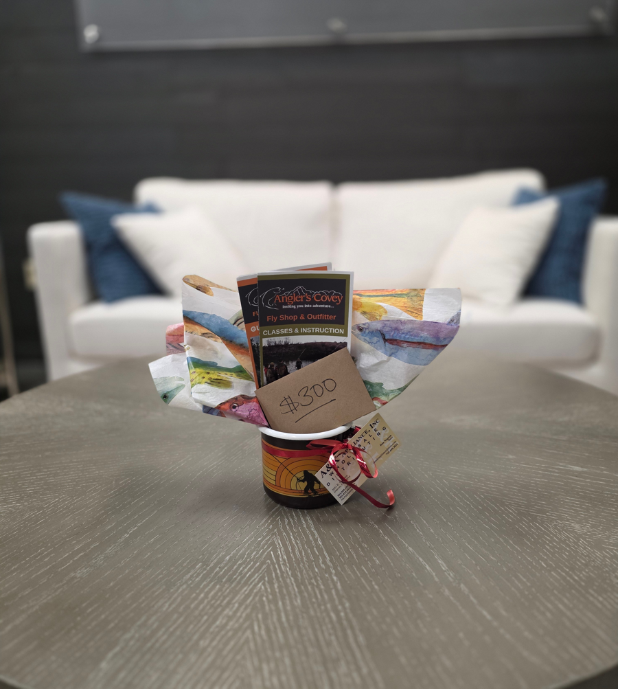 Start your day with a cup of coffee and end it on the river! This basket pairs a stylish coffee mug with a $300 gift card to Angler’s Covey, your go-to spot for all things fly fishing. Whether you’re casting in Colorado’s crisp mountain streams or gearing up for your next big catch, this package is the perfect catch of the day!