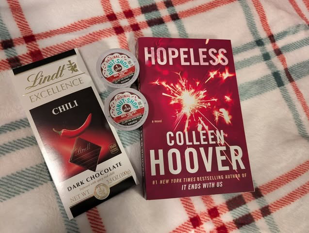 🎄❤️ Hopeless Holiday Romance Bundle 🎄❤️ Snuggle in for the perfect cozy escape with the Hopeless Holiday Romance Bundle—a dreamy collection designed for book lovers, comfort seekers, and anyone craving a little seasonal magic. This irresistible bundle centers around Colleen Hoover’s bestselling novel Hopeless and pairs it with a curated set of treats to make your reading experience unforgettable. ✨ Bundle Includes: • Colleen Hoover’s “Hopeless” – an emotional, gripping romance you won’t want to put down • Holiday Time Velvet Plush Throw featuring a Red Candy Cane pattern – ultra-soft and festive for the perfect reading snuggle. Size: 50x60 • Goose Creek 3-Wick Candle: Christmas Magic – fill your space with warm holiday fragrance • Tumbler with Santa Hat Graphic – “I just love a man in a uniform” for a fun seasonal touch • Red Velvet Donut Shop K-Cups – a deliciously cozy cup to sip while you read • Lindt Chili Dark Chocolate Bar – a sweet heat indulgence to complete your holiday unwind Whether you're gifting it or eyeing it for yourself, this bundle offers comfort, charm, and the perfect excuse to relax and get lost in a great story. 🎁 Bid now and enjoy a holiday filled with warmth, romance, and a little bit of bookish bliss!