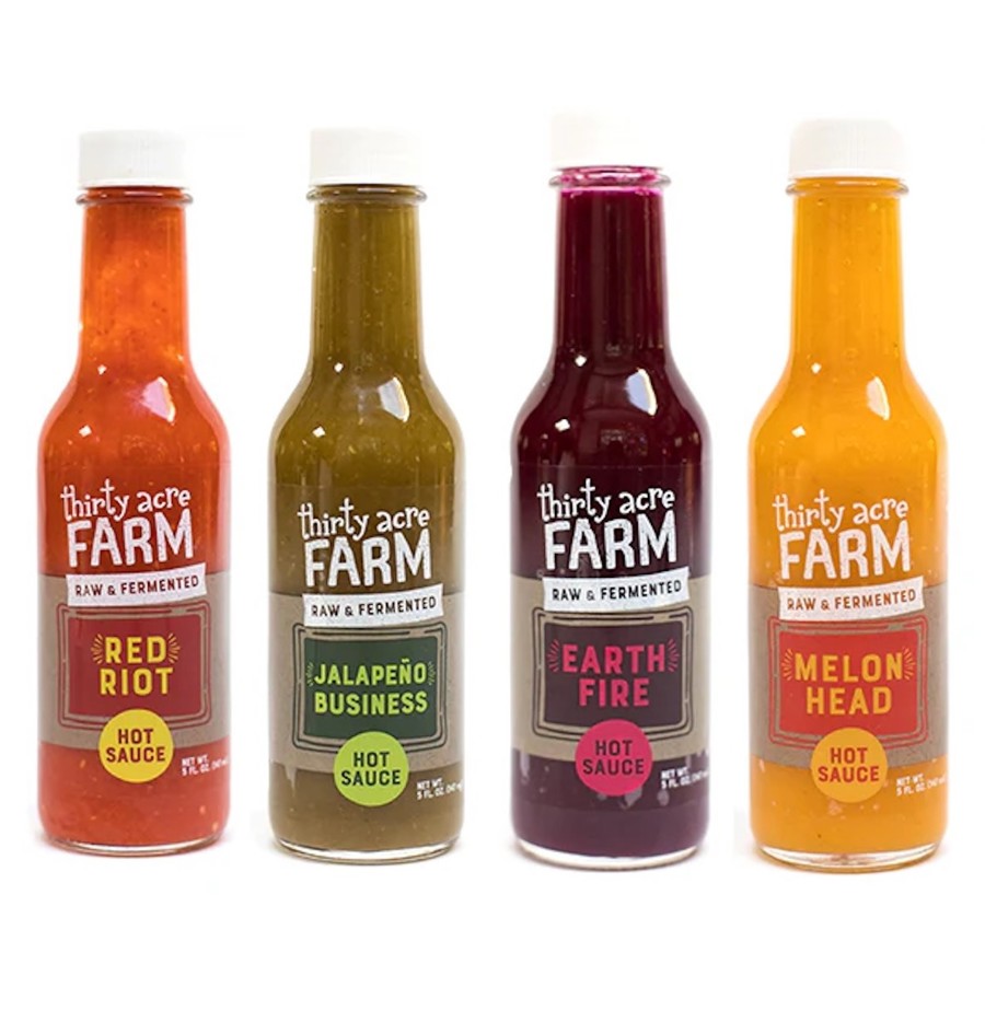 This 4 pack allows you to try a mix of live lacto-fermented, locally produced hot sauces. Thirty Acre Farm is a certified organic farm dedicated to producing high-quality fermented foods and sauces.