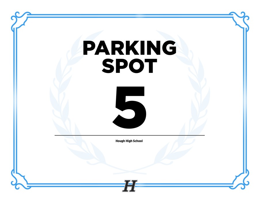 Run don't walk to get a prime parking spot in the Hough teacher parking lot. Good for the 2026-2027 school year. Spots are designated by number.