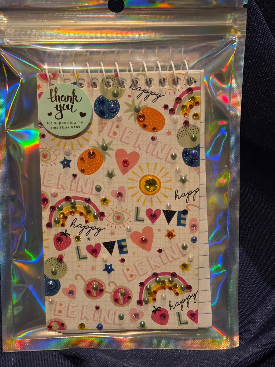 Add a bit of sparkle and whimsy to your day with this blinged-out 3x5 notepad and pen made by Andrea from House of Bling.