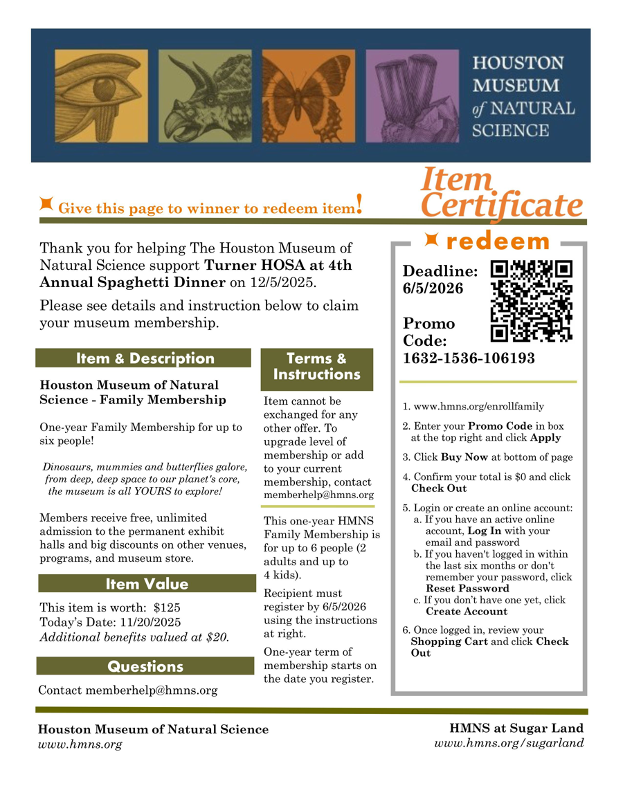 All donations and contributions will fund local Turner HOSA scholarships, travel, and HOSA competition fees for our Turner HOSA students.