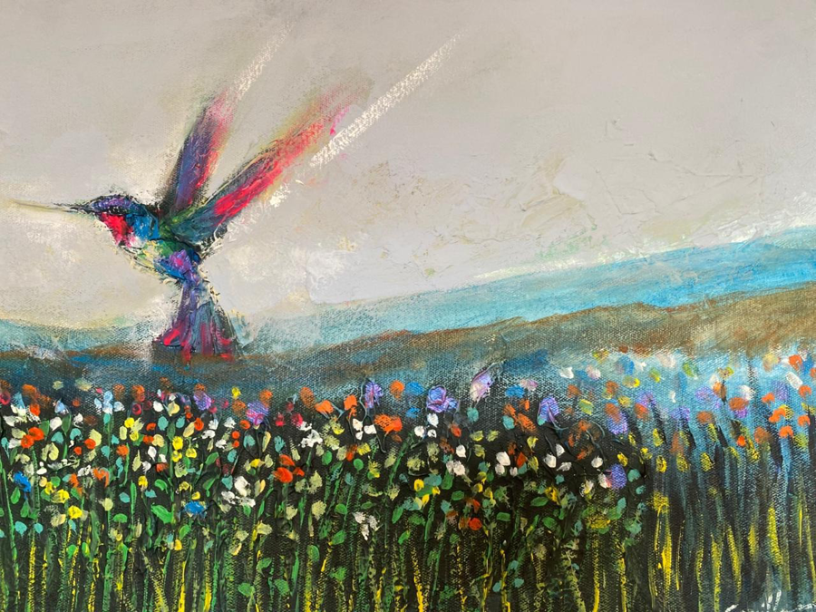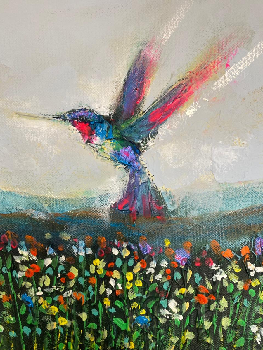 Beautiful original artwork by Ecuadorian artist Fernando Carrillo (2023), titled “Colibrí”. Painted in acrylic on a 30 x 60 cm canvas, this piece stands out for its vibrant color palette, expressive textures, and dynamic composition. The hummingbird—symbol of joy, energy, and hope—rises above a field of flowers that blends contemporary brushwork, layered textures, and a lively atmosphere. Ideal for collectors or for adding an artistic and uplifting touch to any space. Español: Hermosa obra original del artista ecuatoriano Fernando Carrillo (2023), titulada “Colibrí”. Pintada en acrílico sobre lienzo de 30 x 60 cm, esta pieza destaca por su vibrante paleta de colores, composición dinámica y una atmósfera llena de vida. El colibrí, símbolo de alegría, energía y esperanza, se eleva sobre un campo de flores que combina texturas, trazos expresivos y un estilo contemporáneo. Ideal para coleccionistas o para dar un toque artístico y positivo a cualquier espacio. Original artwork by Ecuadorian artist Fernando Carrillo (2023), titled “Colibrí.” Painted in acrylic on a 30 x 60 cm canvas, this piece stands out for its vibrant colors, expressive textures, and dynamic composition. The hummingbird—symbol of joy, energy, and hope—flies above a lively field of flowers rendered in a contemporary, impressionistic style. A unique artwork perfect for collectors or for enhancing any space with color and inspiration.
