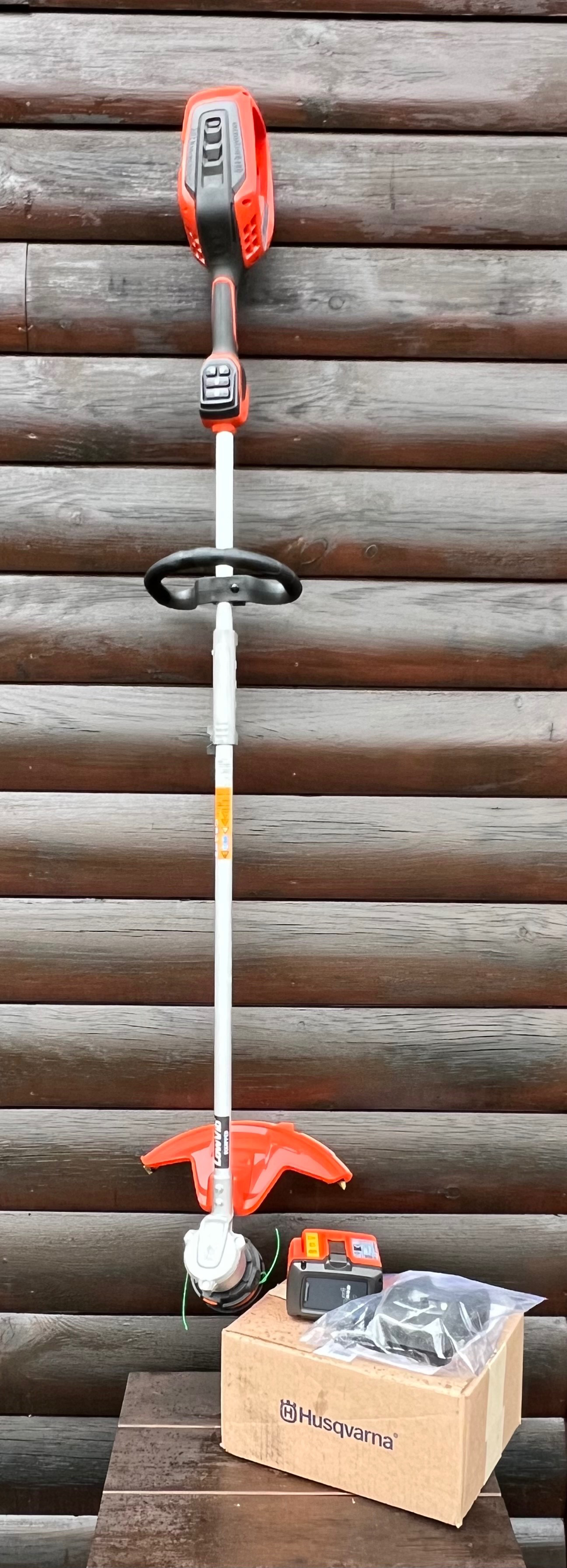Husqvarna 320iL battery grass trimmer with an electric motor. Includes battery and charger.