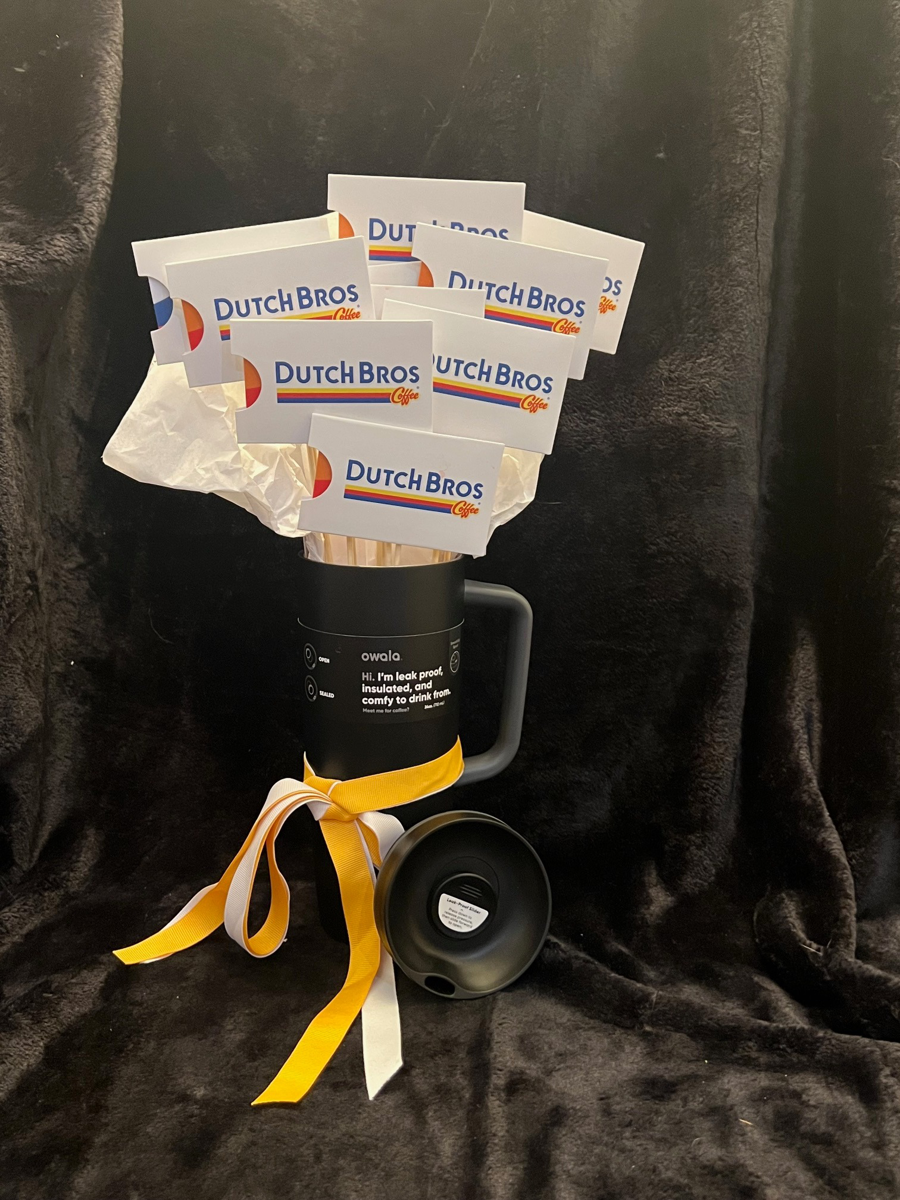Owala coffee mug with $50 in Dutch Bros gift cards