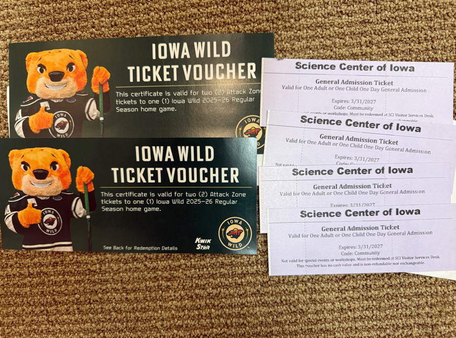 2 Iowa Wild ticket vouchers