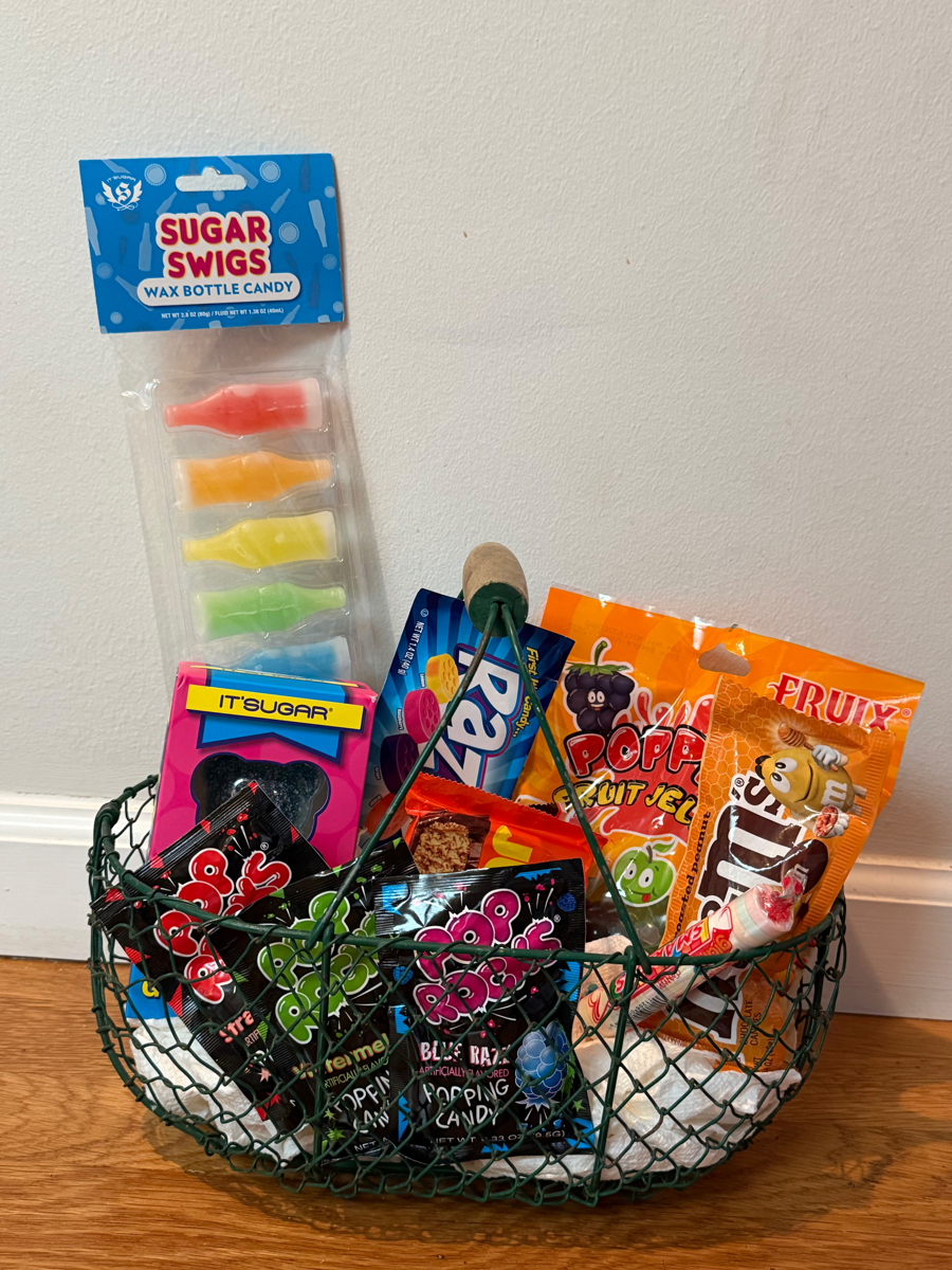 Compliments of local favorite It'Sugar, we have a variety of different treats. Various candies and chocolates, ranging in all sizes, rarities, and flavor profiles. There's something in this pack for everyone! (I call dibs on the giant Sour Gummy Bear!)