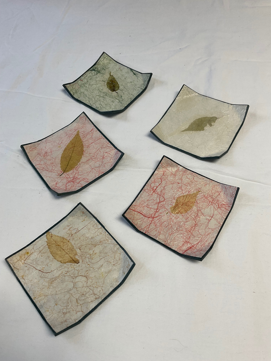 A set of 5 square Japanese paper plates. 4.5 inches.