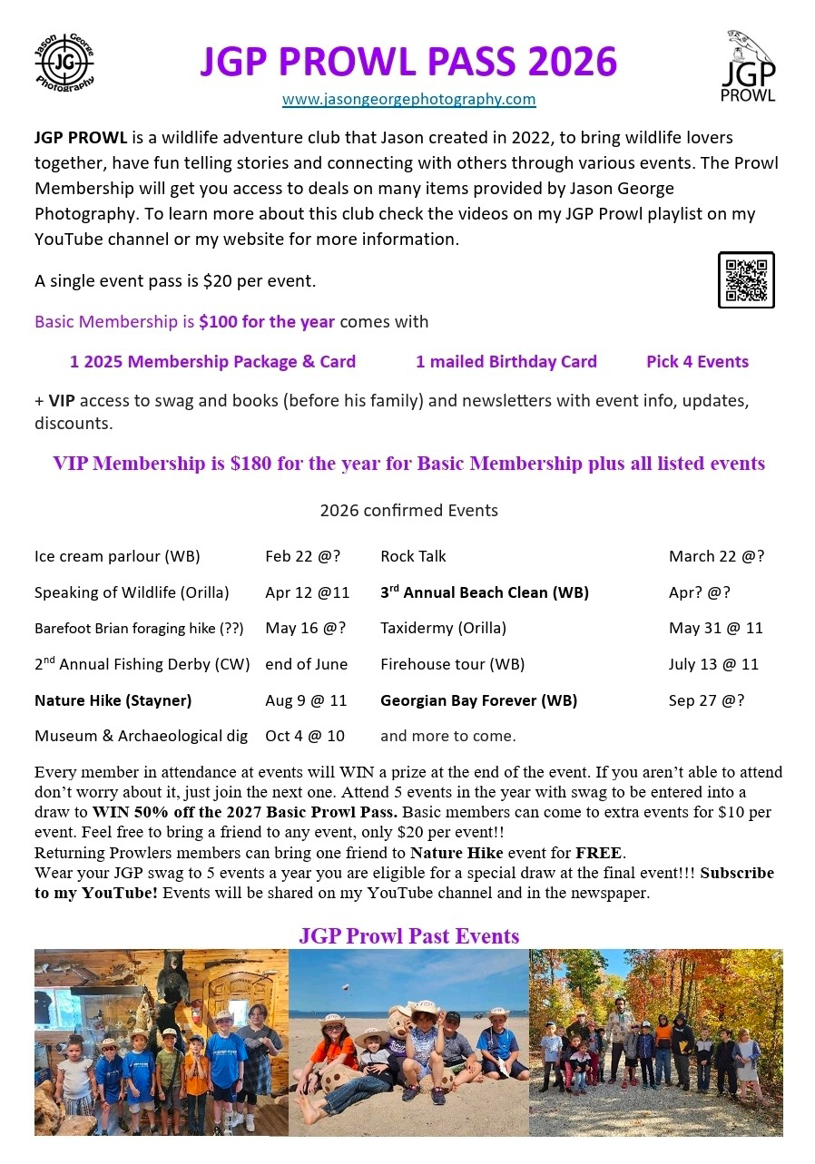 JGP PROWL is a wildlife adventure club that Jason created in 2022, to bring wildlife lovers together and have fun telling storie sand connecting with others through various events. The Prowl Membership will get you access to deals on many items provided by Jason George Photography. To learn more about this club check the videos on my JGP Prowl playlist on my YouTube channel.