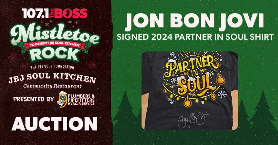 A Jon Bon Jovi autographed "Partner In Soul" XL T-Shirt from the 2024 Mistletoe Rock event.