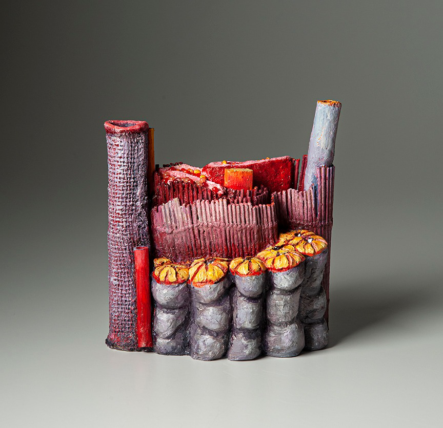 Artists Statement: This sculpture takes off from forms in one of my paintings, which in turn take off from