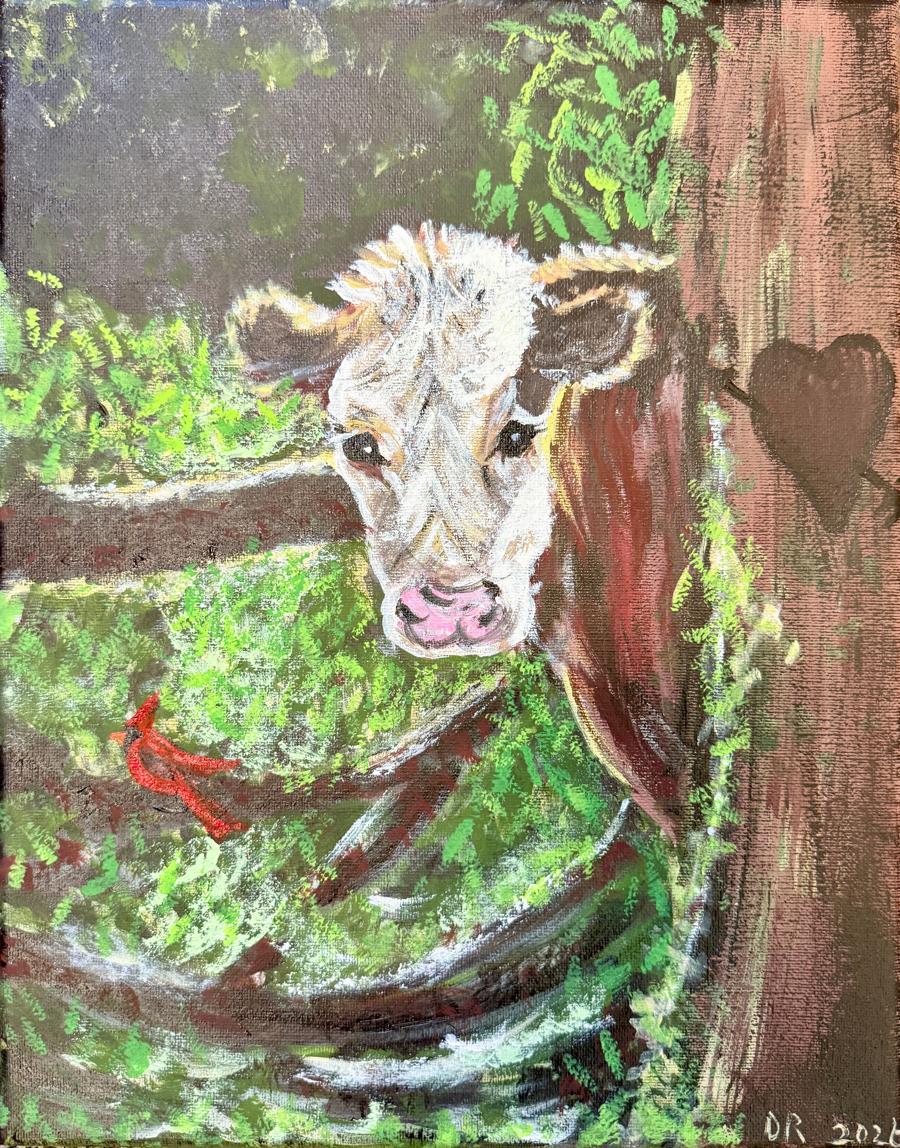 The love of visiting my moms uncle Ermels farm when I was little. My love for animals from a very early age. I enjoy painting art especially of animals that children will enjoy and want to pick out to bid on during our findraiser