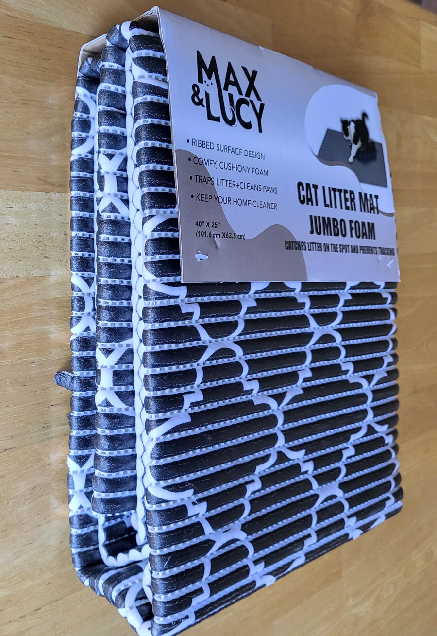 Max & Lucy Mat is cushiony and easy to clean. Reduce litter tracking with this attractive foam mat. Measures about 40” x 25”