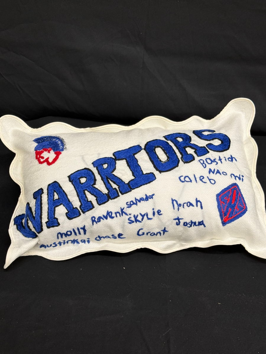 Take home a truly unique piece of Warrior pride! This custom hand-embroidered pillow showcases the KA class names stitched with care, making it a meaningful keepsake for years to come. Whether displayed on a couch, reading nook, or child’s room, this pillow is a beautiful celebration of friendship, learning, and unforgettable KA memories. Items: Hand-Embroidered Warrior Pillow Featuring KA Student Names