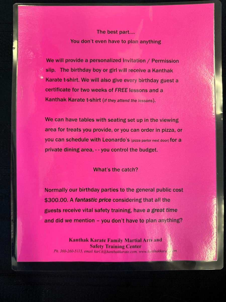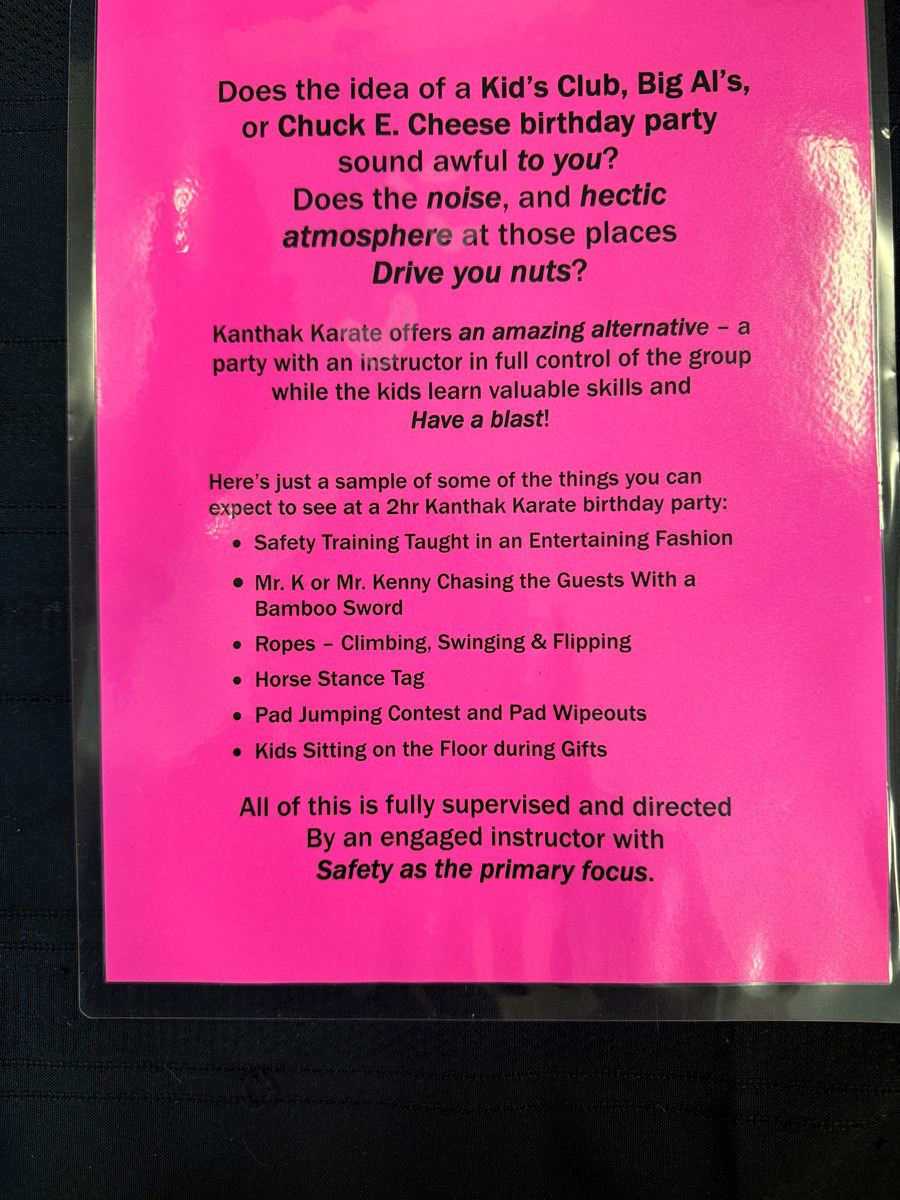Experience the excitement of martial arts with the Kanthak Karate Gift Certificate, valued between $200 and $300. This versatile certificate is perfect for those looking to dive into a month of training, offering a comprehensive one-month training package that will enhance your skills and confidence in karate. Alternatively, it can be used to host an unforgettable 2-hour karate-themed birthday party, complete with fun activities and expert instruction that will delight kids and adults alike. If you're interested in safety, the certificate also covers a 1-hour group safety seminar, providing valuable knowledge and skills for personal protection. Don't miss this opportunity to engage with karate in a fun and educational way!