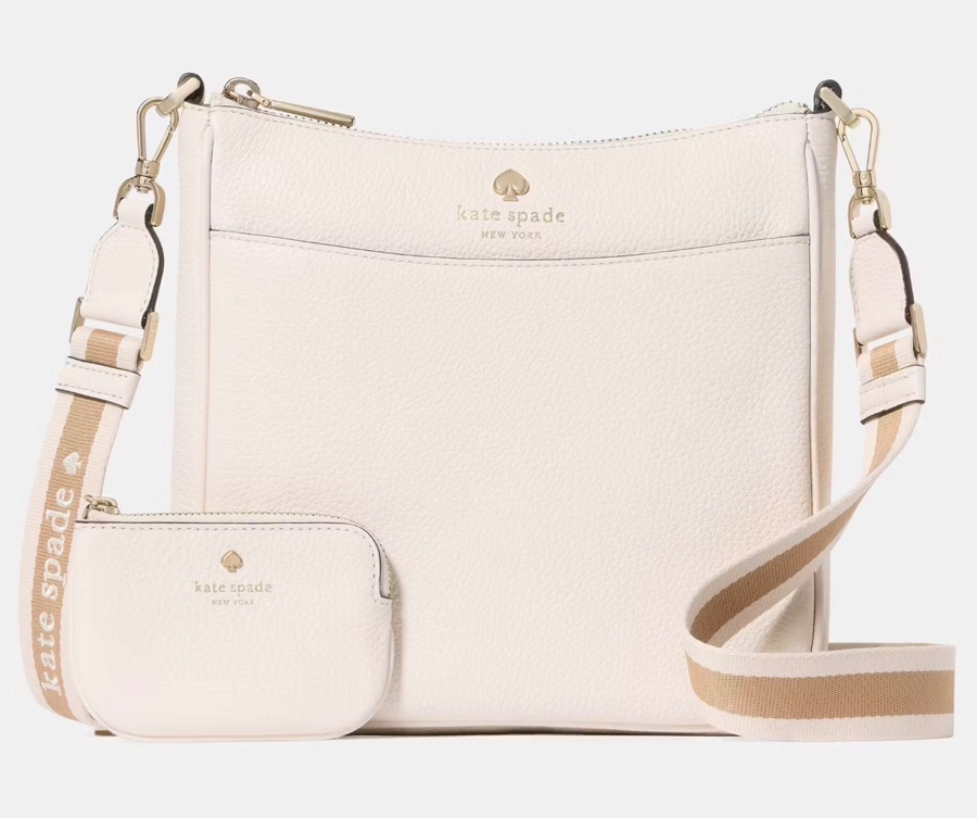 Cross bodies are perfect if you want to carry your important things without all the bulk. Pebbled Leather, 2 way script logo lining, detachable pouch, interior back zipper pocket, drop zip top closure, comes with crossbody strap. Length 8.5”, height 8.4”, with 2.0”.