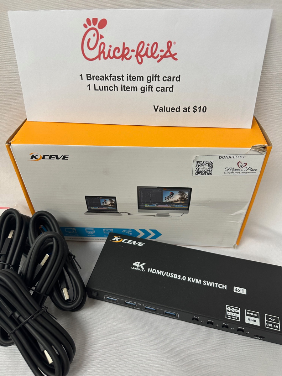 KCEVE HDMI/USB3.0 KVM Switch-4x1/$10 Chick-fil-A gift card