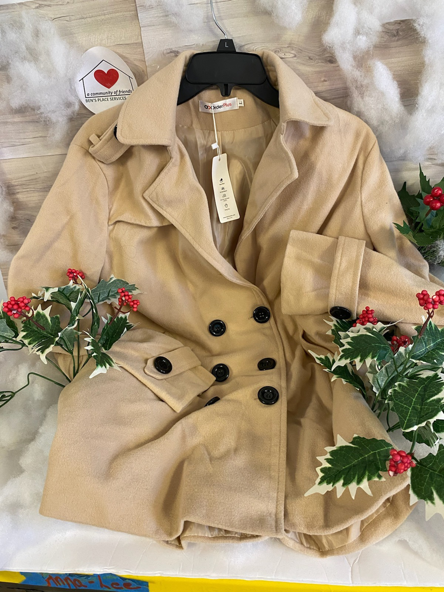 Just warm enough for our winter weather. This large camel colored light weight jacket is by Order Plus. That special someone will be glad to have it added to their wardrobe.