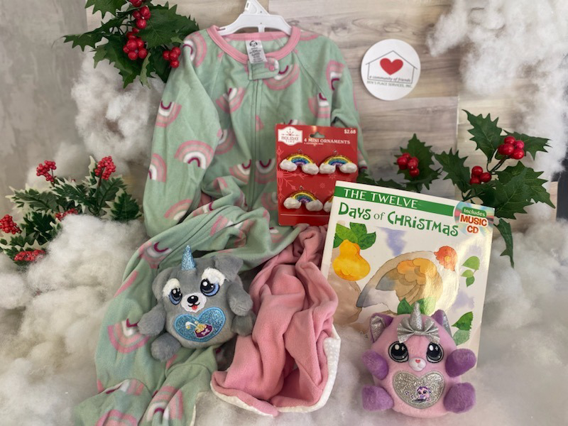 2–24-month Gerber footed warm PJ's will keep your baby warm while you read a Christmas book that comes with a cd. 2 stuffies and 4 small rainbow ornaments complete this gift.