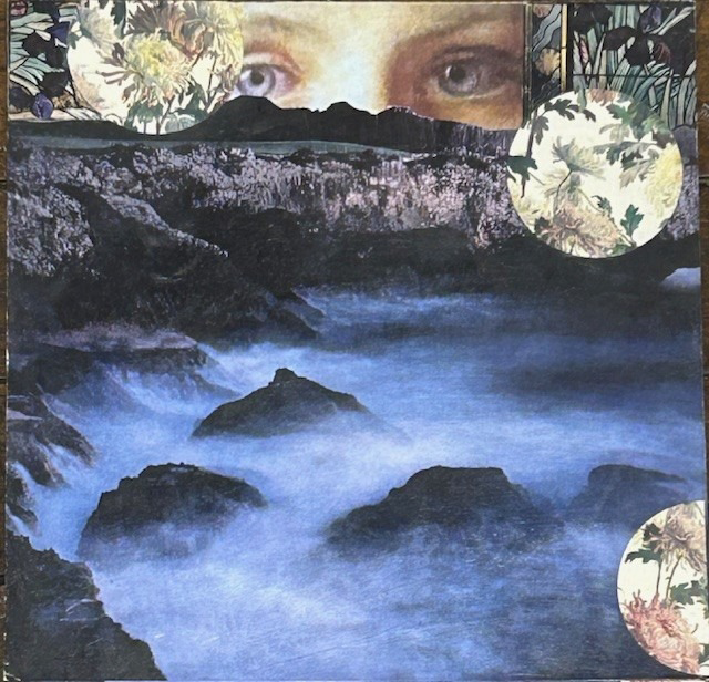 Artist Colleen Hammond. Collage and print on panel. 8"x8".