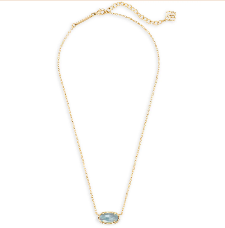 If blue is your favorite color ,then we have the perfect Kendra Scott Elisa gold pendant necklace, with a light blue illusion stone just for you.