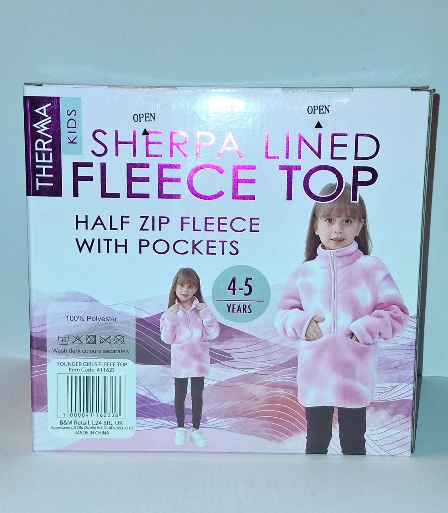 Sherpa Lined Fleece Top With Pockets Age 4-5 This sherpa-lined, half-zip top features handy pockets and is perfect for layering up on chilly days.