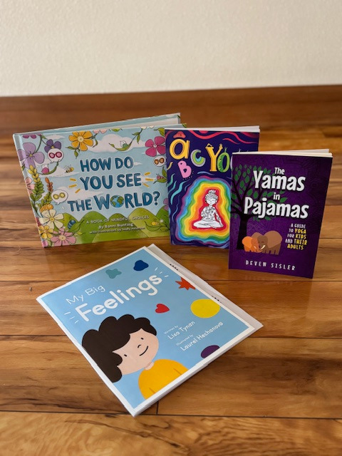Enjoy this sweet four pack of yoga and mindfulness books. "The Yamas in Pajamas" by our Kids Yoga Teacher Deven Sisler "My Feelings" by our Kids Yoga Teacher Lisa Tynan "How I See the World" by local Mindfulness Teacher Banni Bunting "ABC Yogi" by Krystal Flynn, featuring Deven and her kiddo for the letter "G"