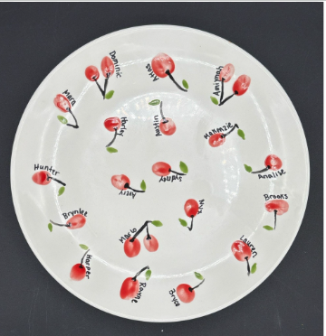 This plate was Cherry Picked just for you! Student’s dipped their thumbs in glaze and created these mouth watering cherries. Each cherry is labeled with the student’s name.
