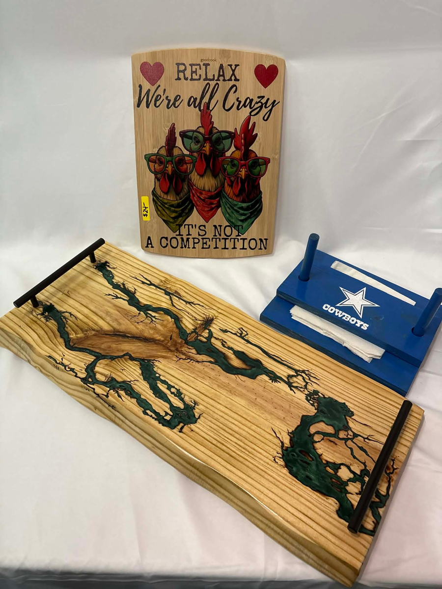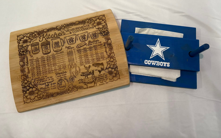 Bizzy B's Cleaning: Serving Board Itzadoozie Pets 417: Cutting Board Merl's Wood Craft: Napkin Holder