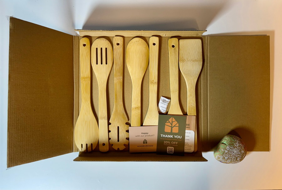 Attractive and functional, this pottery utensil urn complete with bamboo utensils and cutting board are nice addition to your kitchen.