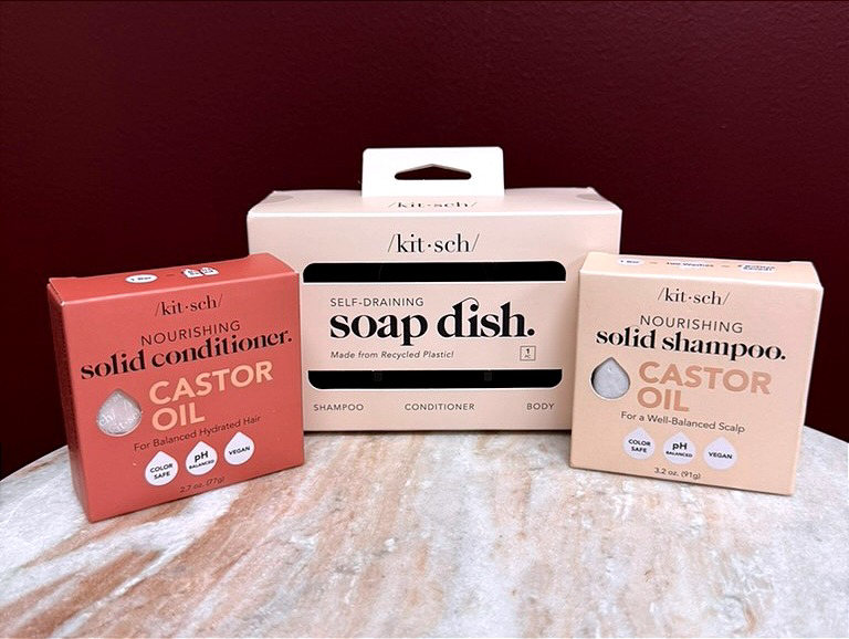 This package features a self draining soap dish that ensures your bars stay dry and last longer, preventing any sogginess. Included are premium shampoo bar and conditioner bars, enriched with nourishing castor oil to provide your hair with hydration and shine.