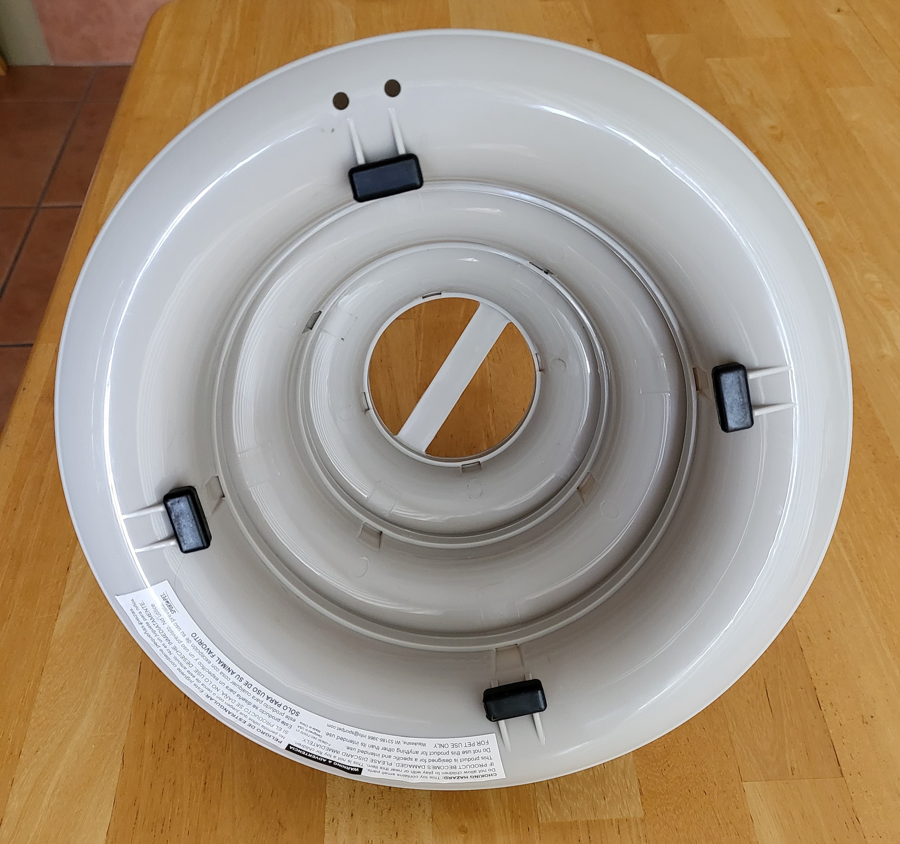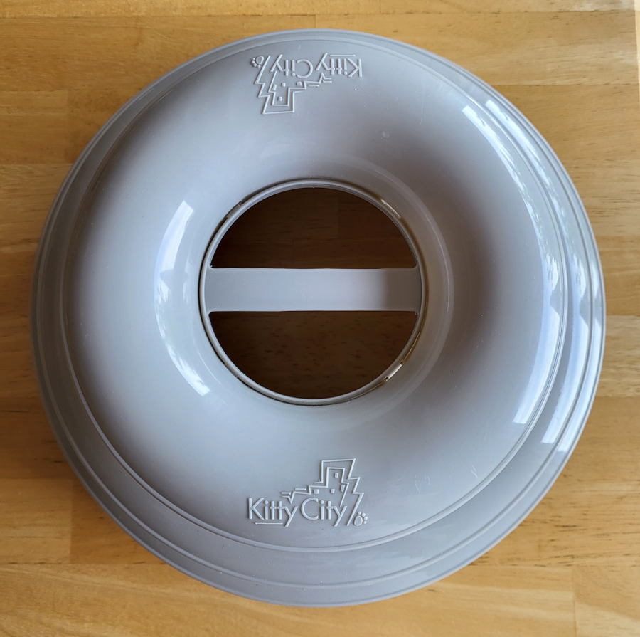 There are bells inside the ball toys to keep your cat’s interest. Measures 6”tall x 10” in diameter, in new condition.