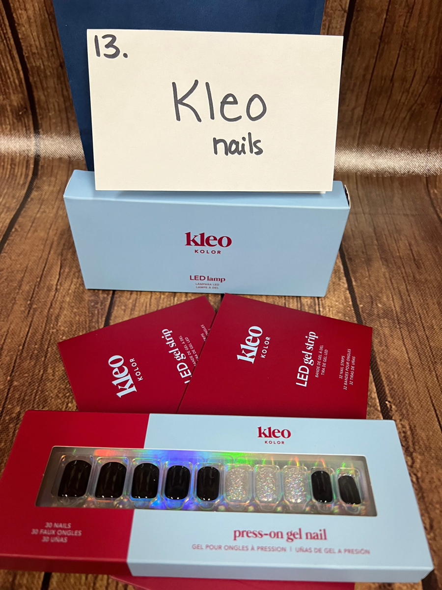 Kleo press on nails: 'Midnight Lights' LED lamp 2 sets of LED gel strips: ''New Woman', 'Not Gilty'