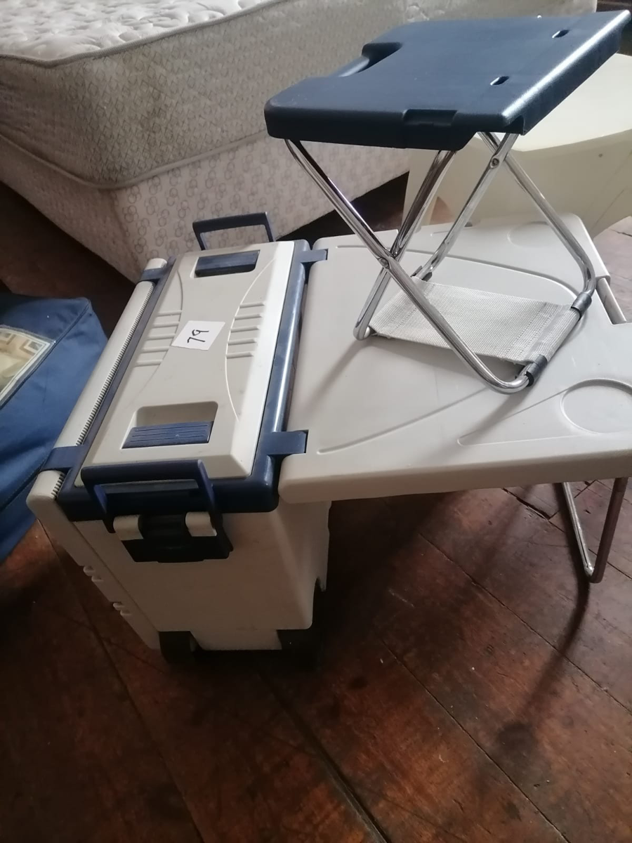 Koelerboks met opvoutafel en stoeltjies werkende kondisie