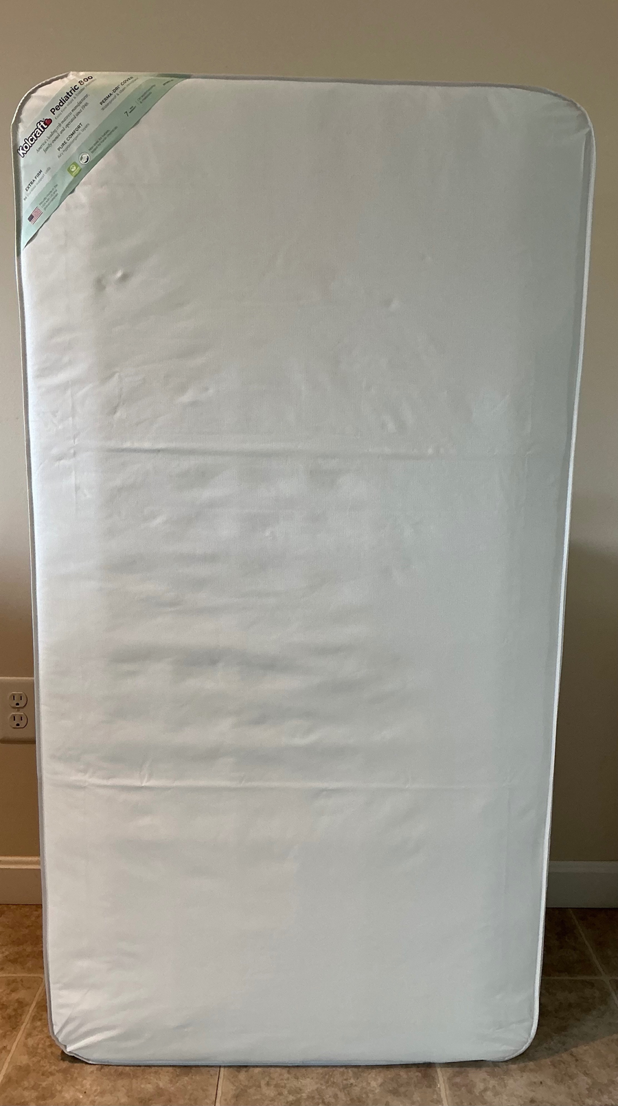 Brand new crib mattress used once for 3 nights for a visiting granddaughter. Google Kolcraft Pediatric 800 mattress for complete details. Mattress measurements, Length 52 inches, width 28 inches, high 5 inches.