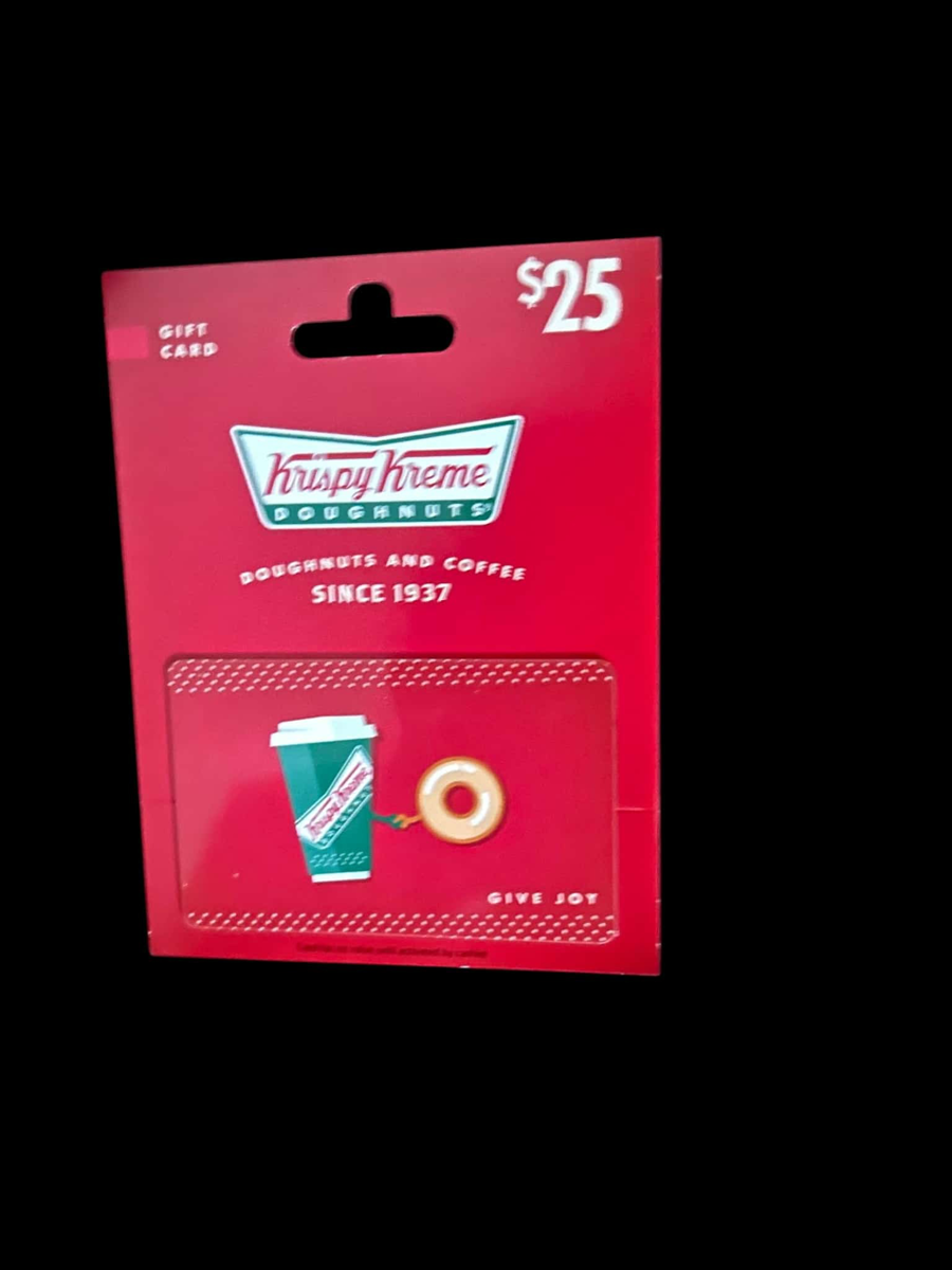 Indulge in the delightful experience of Krispy Kreme with this $25 gift card! Who doesn't enjoy the famous donuts that have made Krispy Kreme a beloved name since 1937? Treat yourself and maybe a friend, to a hot cup of coffee paired with your favorite donut and savor the sweet moments.