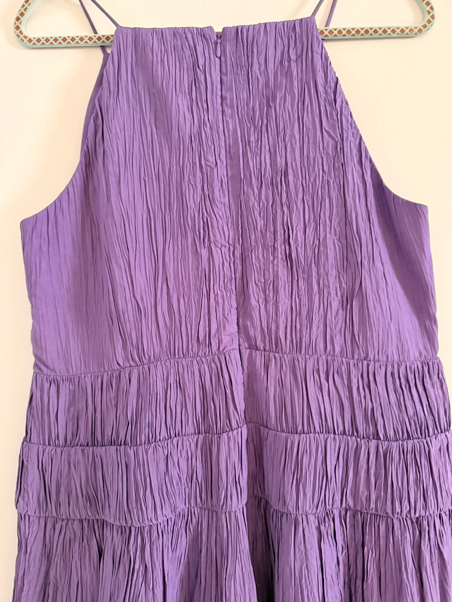 Sleeveless A-line midi dress featuring a shirred finish and duo side seam pockets. Lined bodice. High, square neckline. Thin spaghetti shoulder straps. Zipper at the side. This is a versatile dress for cruising, fun night out, special summer events and even Harbor nights! Throw it on and go! No need for ironing.